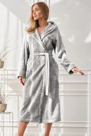 L&L Cora long women's bathrobe, gray with hearts, 2552