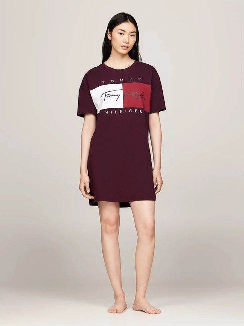 Koszula nocna oversize Tommy Hilfiger bordowa UW0UW05631