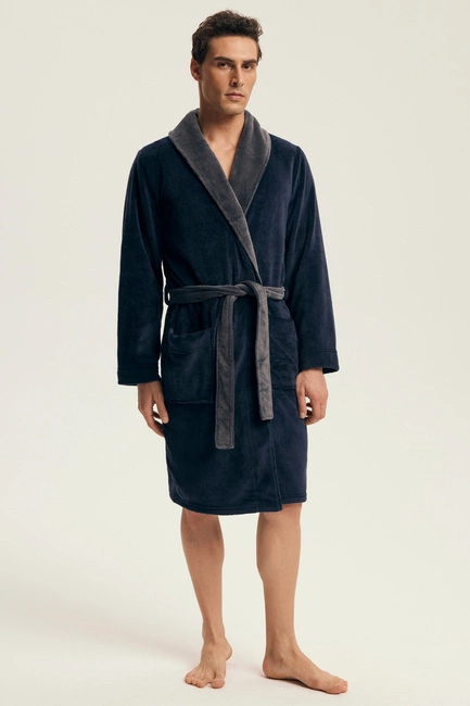 Men's warm dressing gown with collar Henderson navy blue 43378