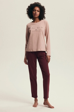 Henderson Dorla Damen-Baumwollpyjama, rosa und burgunderrot, 43733