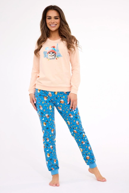 Długa piżama damska miękka bawełna Paris Cornette brzoskwiniowy 467/426