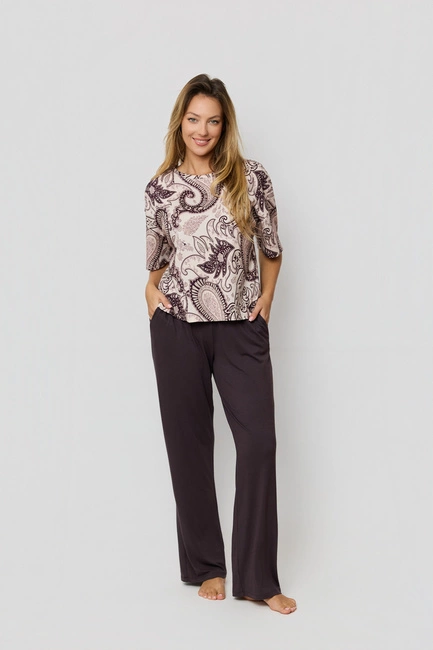 Piżama damska z bawełny i wiskozy Mefemi Iris brązowa PW72